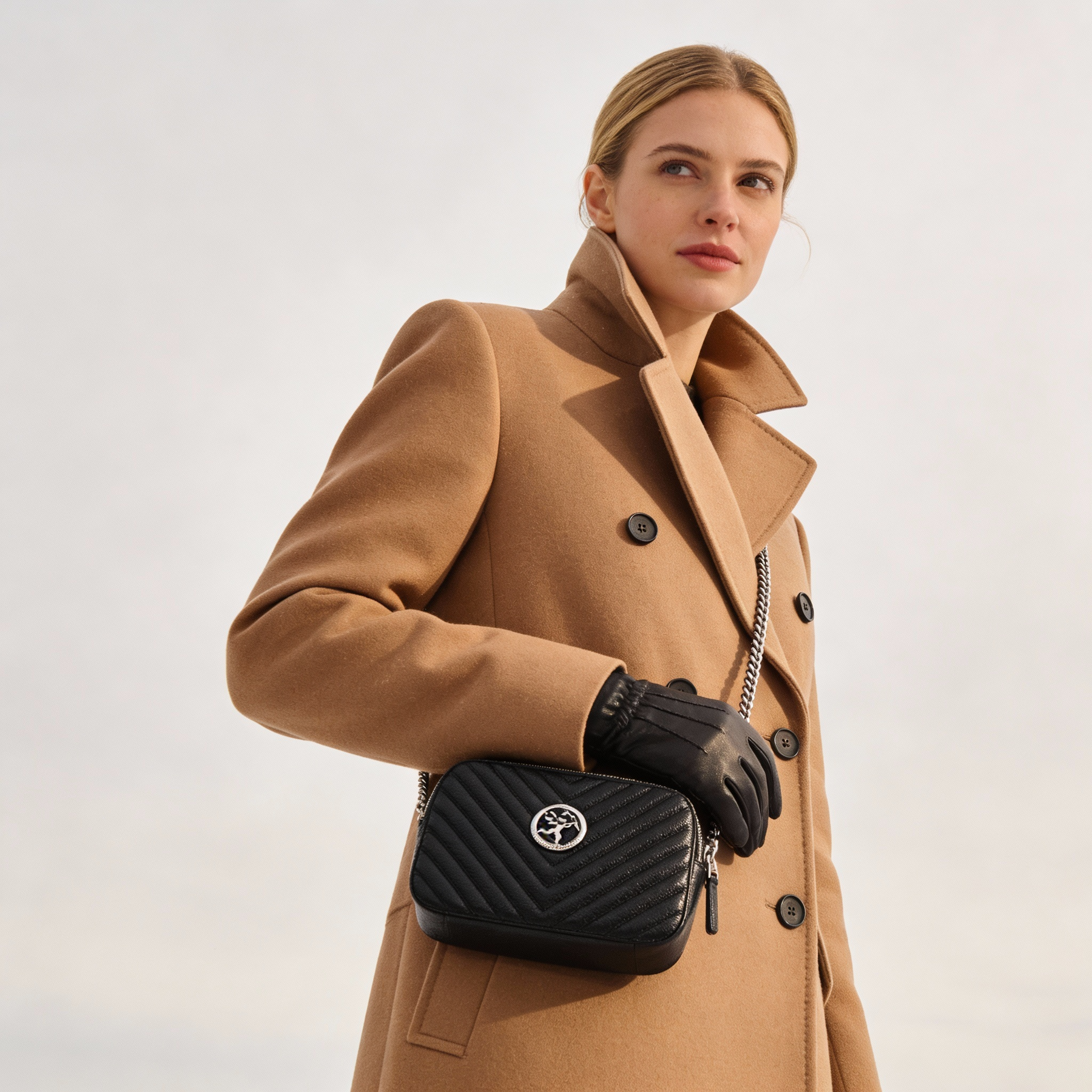 Handgefertigt aus feinstem Echtleder. Innen mit zwei rotfarbenen, verschließbaren Fächern, einem Seitenfach und drei Kartenfächern. Mit Metallemblem auf der Vorderseite. Inklusive Schulterkette und Ledertragegurt. Lieferung in dekorativer Geschenkbox. Elegantes, funktionales Design.