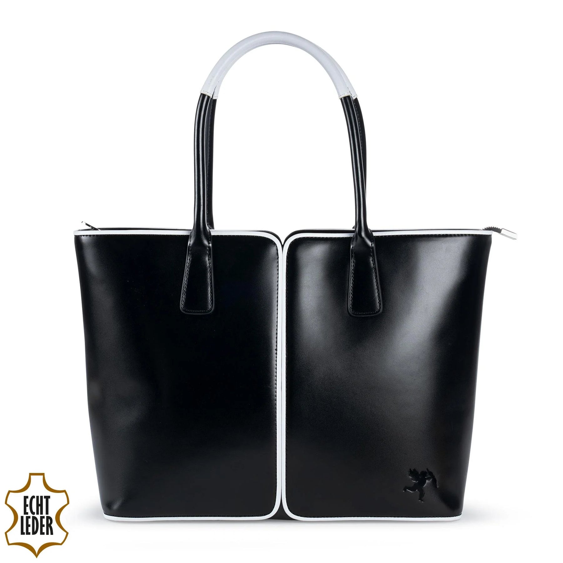 Sac à bandoulière au design intemporel et élégant avec des bordures en cuir véritable contrastées blanches et une doublure violette. Fabriqué en cuir de vache robuste. Cette mallette a de la place pour tout, au bureau et en déplacement. 3